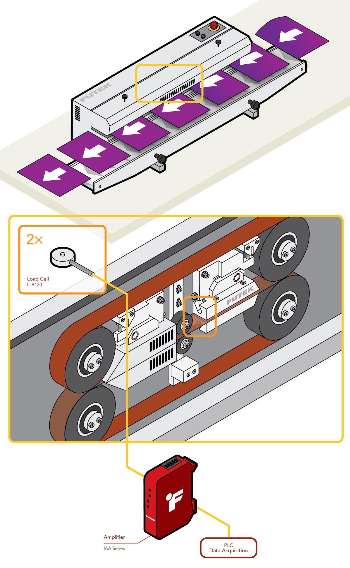 4、由 IAA 系列模拟放大器放大力传感器输出的应变信号,然后输入 PLC,进行故障监测和邮袋密封验证。