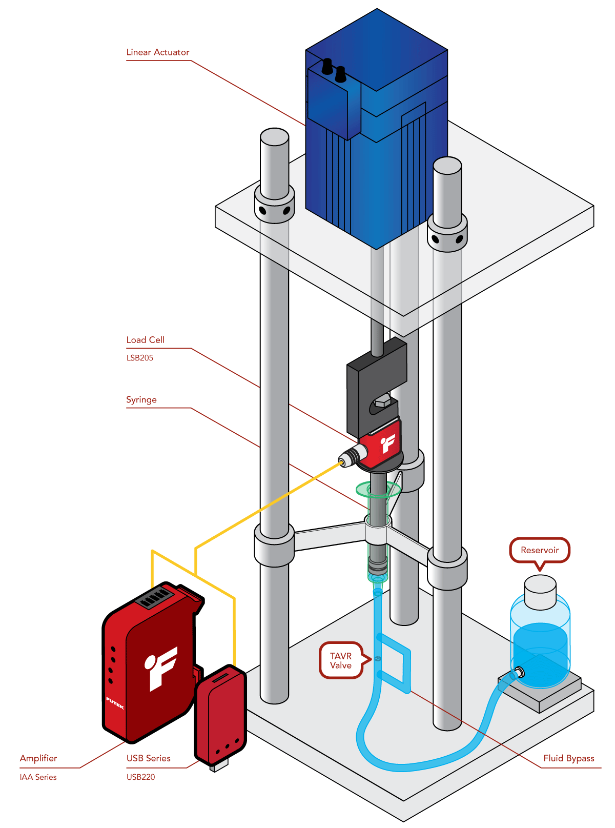 1、LSB 系列力传感器与线性致动器和注射活塞相连接,用于测量注射活塞的压力,以进行测试验证。