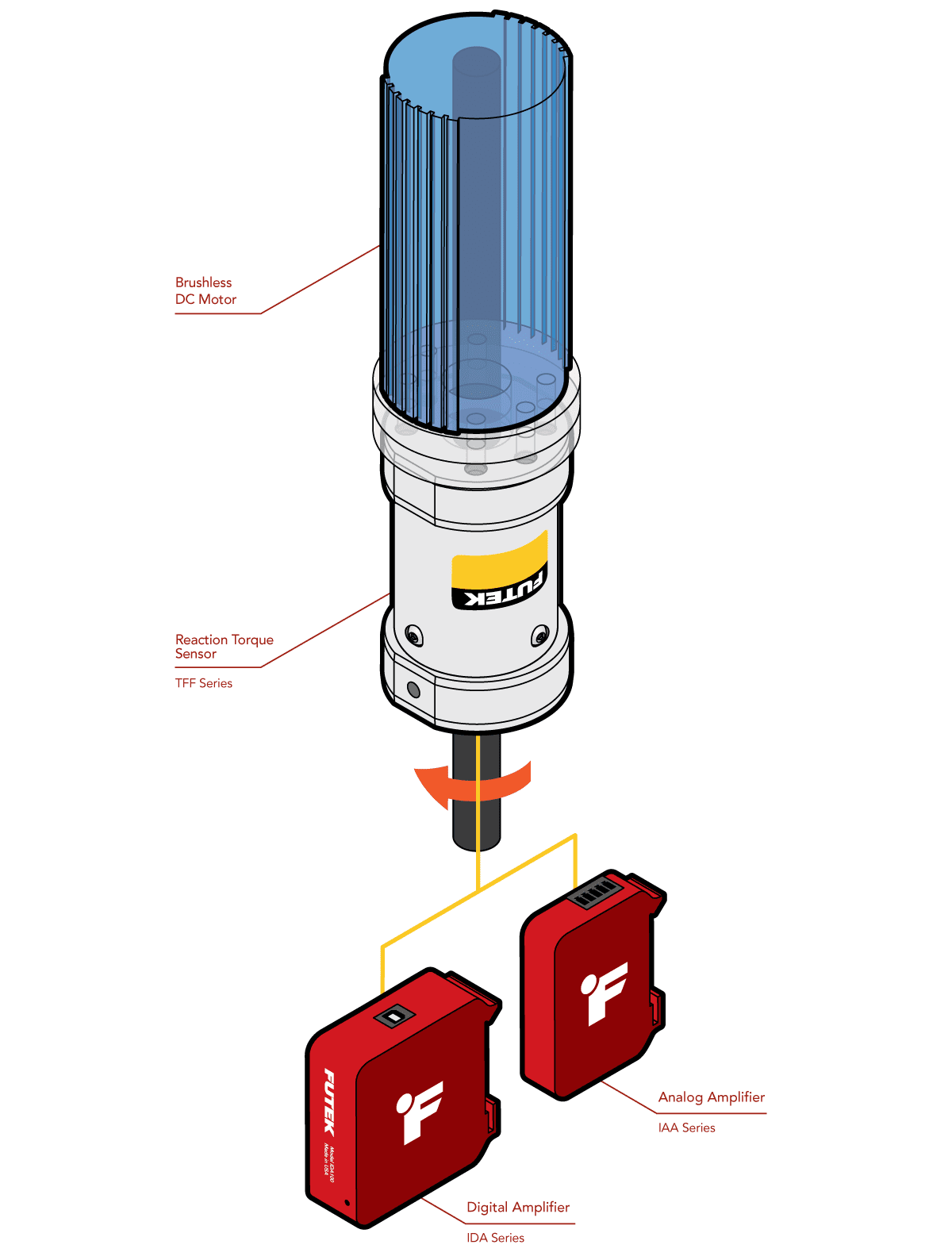一个静态扭矩传感器(TFF系列),搭配IAA系列模拟放大器或IDA100数字放大器。