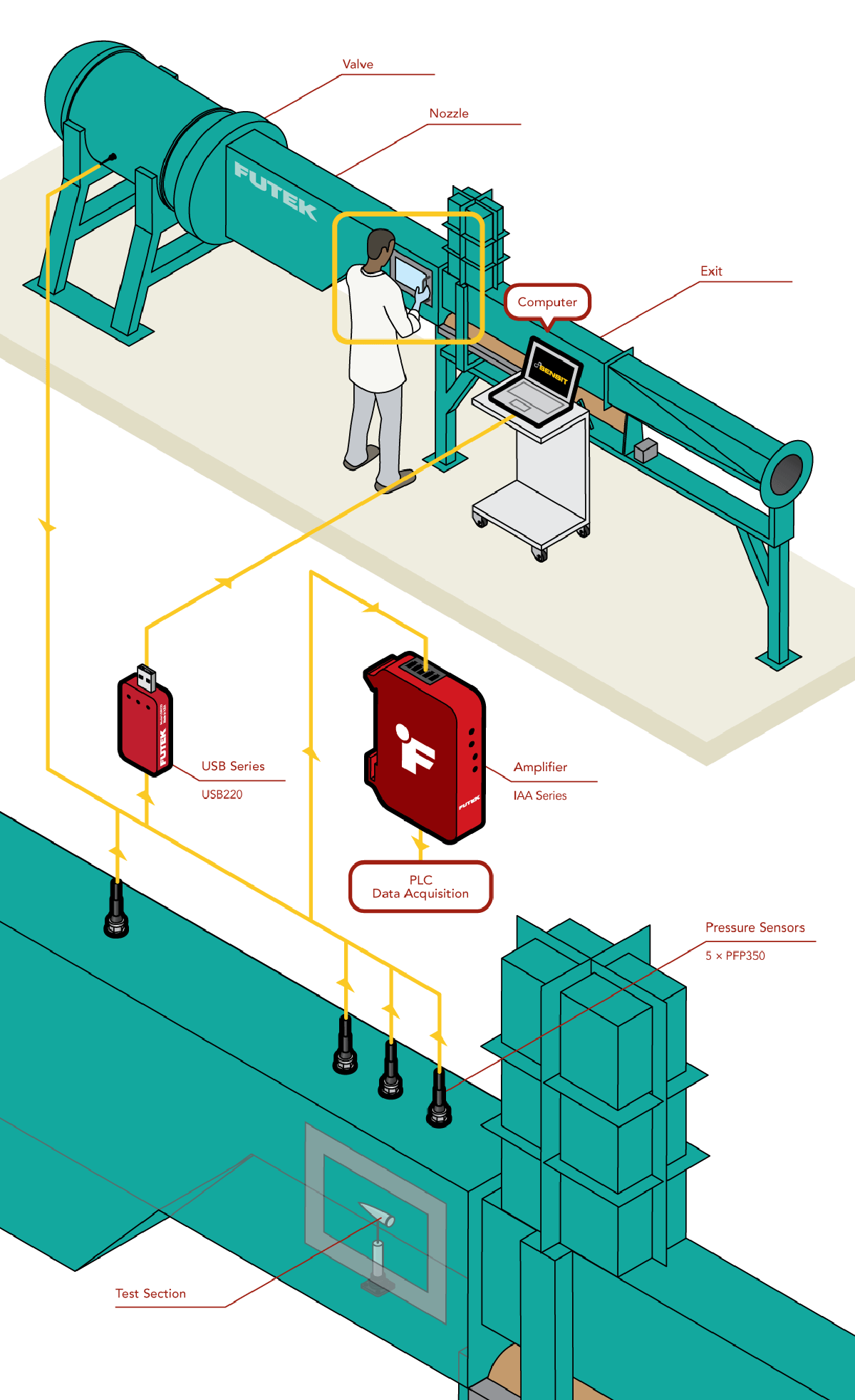 1、PFT510乐鱼(中国)官方安装在风洞中的临界点。在本例中,传感器安装在压力箱、喉管和测试区域的三个位置上。